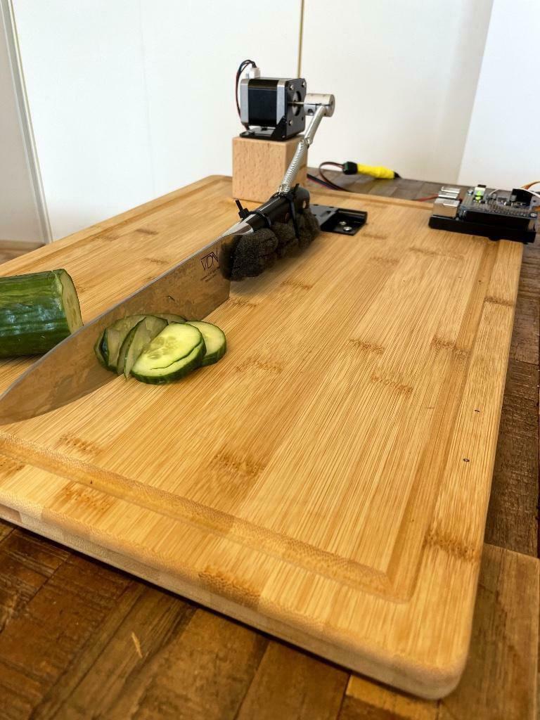 Een experimenteel project waarbij een koksmes op afstand werd aangestuurd door online bezoekers via een YouTube-livestream.